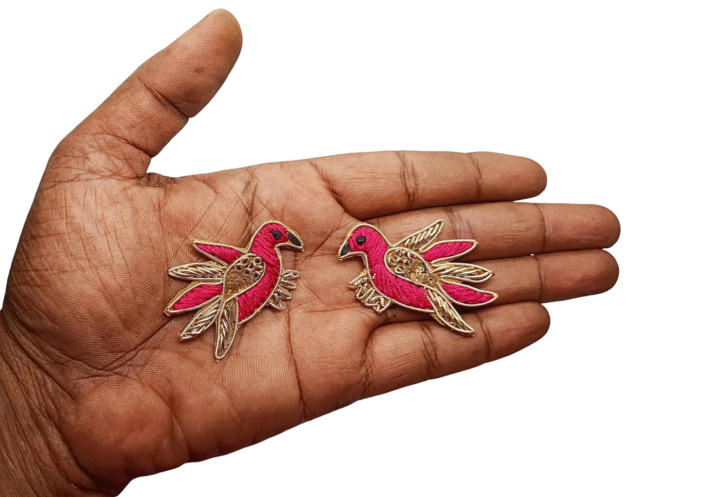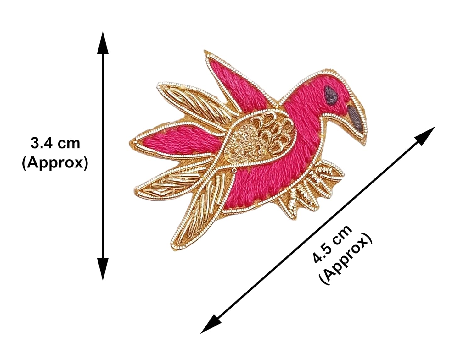 Transform your crafting projects with these exquisite handcrafted bird-shaped applique patches. Each patch showcases stunning artisanship with vibrant maroon yarn and traditional Kangni zari work, creating an elegant fusion of colour and metallic embellishment. Measuring approximately 3.4 x 4.5 cm, these delicate patches come in a set of 2 Pair, perfect for adding a touch of sophistication to your creative endeavours. The intricate detailing features beautiful golden zari work patterns that complement the rich maroon base, making each bird patch a miniature work of art. These versatile embellishments are ideal for enhancing clothing, accessories, and home décor items. Whether you’re updating a kurta, decorating a handbag, or creating unique home accents, these patches add a distinctive traditional touch. The careful craftsmanship ensures each piece maintains its aesthetic appeal while being suitable for various applications in clothing and craft projects.