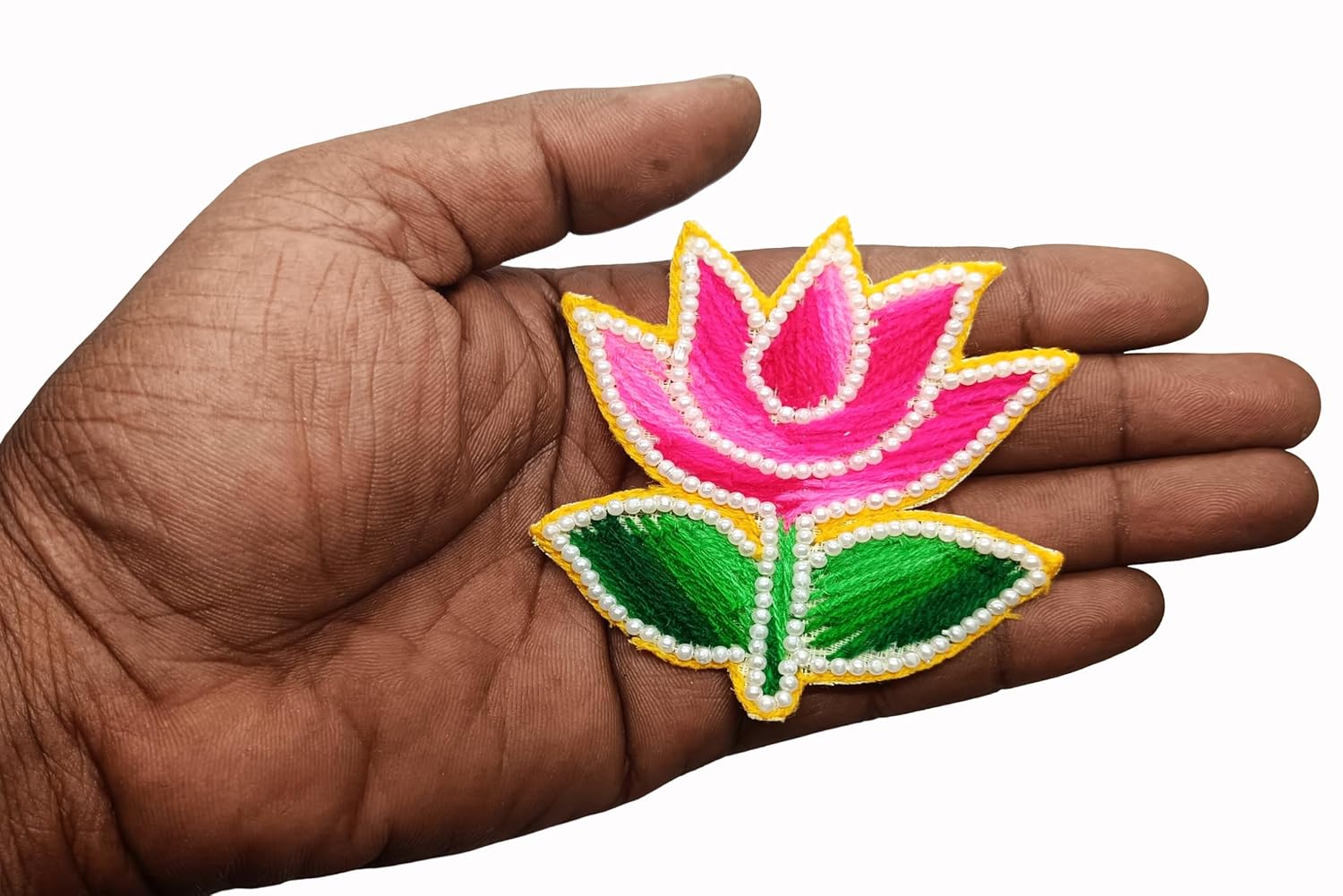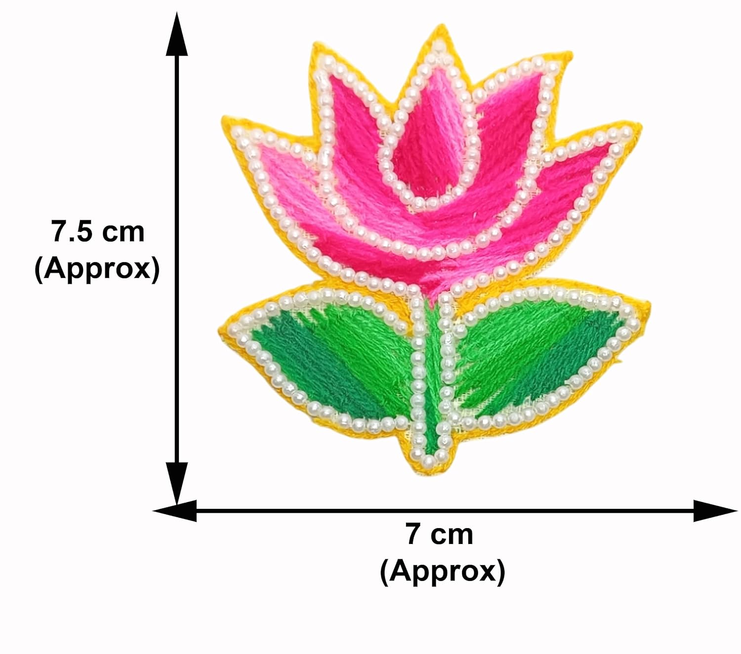 Transform your creations with this exquisite handcrafted lotus flower applique patch. Meticulously crafted with vibrant pink and green yarn, this stunning piece features delicate pearl-like beading that outlines every petal and leaf, creating a luxurious dimensional effect. Measuring approximately 7.5 cm in length and 7 cm in width, this versatile embellishment adds an elegant touch to any project. The striking contrast between the bright pink petals and emerald green leaves creates a captivating visual appeal. Perfect for enhancing garments, accessories, home décor items, or craft projects, this applique can be sewn or attached to various materials. Each piece showcases intricate needlework and careful attention to detail, making it an ideal choice for adding a touch of sophistication to your creative endeavors. The classic lotus design symbolises beauty and grace, making it suitable for both traditional and contemporary applications. Add this charming embellishment to your collection and elevate your crafting projects to new heights of elegance. Return Policy