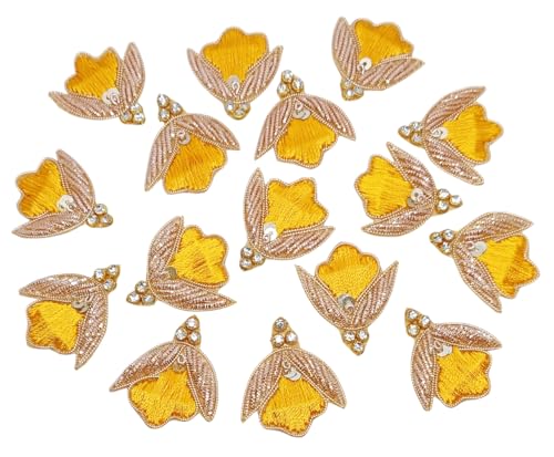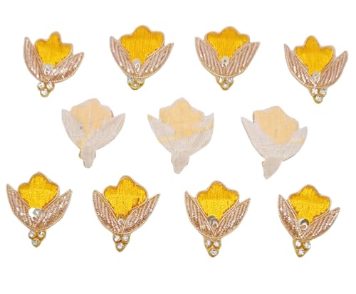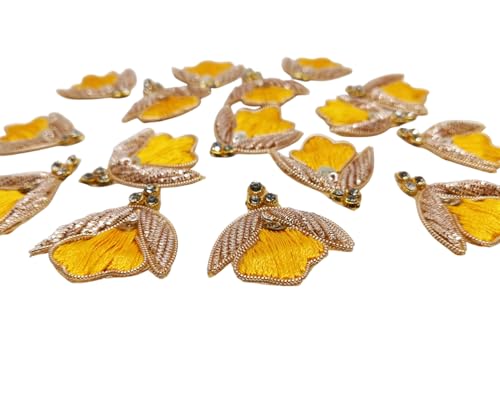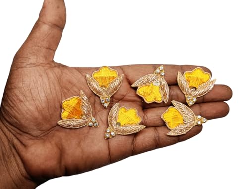 Introducing our exquisite Flower Design Zardosi Patches, meticulously crafted with premium materials to add an elegant touch to your attire. These decorative patches widely used to decorate , design & repair your valuable cloths like saree, blouse, kurti , salwar , lehanga, t shirt, pillow cover, wedding dresses, curtain , bags etc. These items are fully handmade which gives your cloths a decent looks. You can sew or paste on clothes, Size and Dimensions: Approximate dimensions of 3.4 cm in length and 3.2 cm in width, making it versatile for various clothing items, bags, accessories, and more. Rich Color Palette: Adorned in a vibrant combination of golden yellow and golden, our patches effortlessly infuse sophistication and charm into any ensemble.
